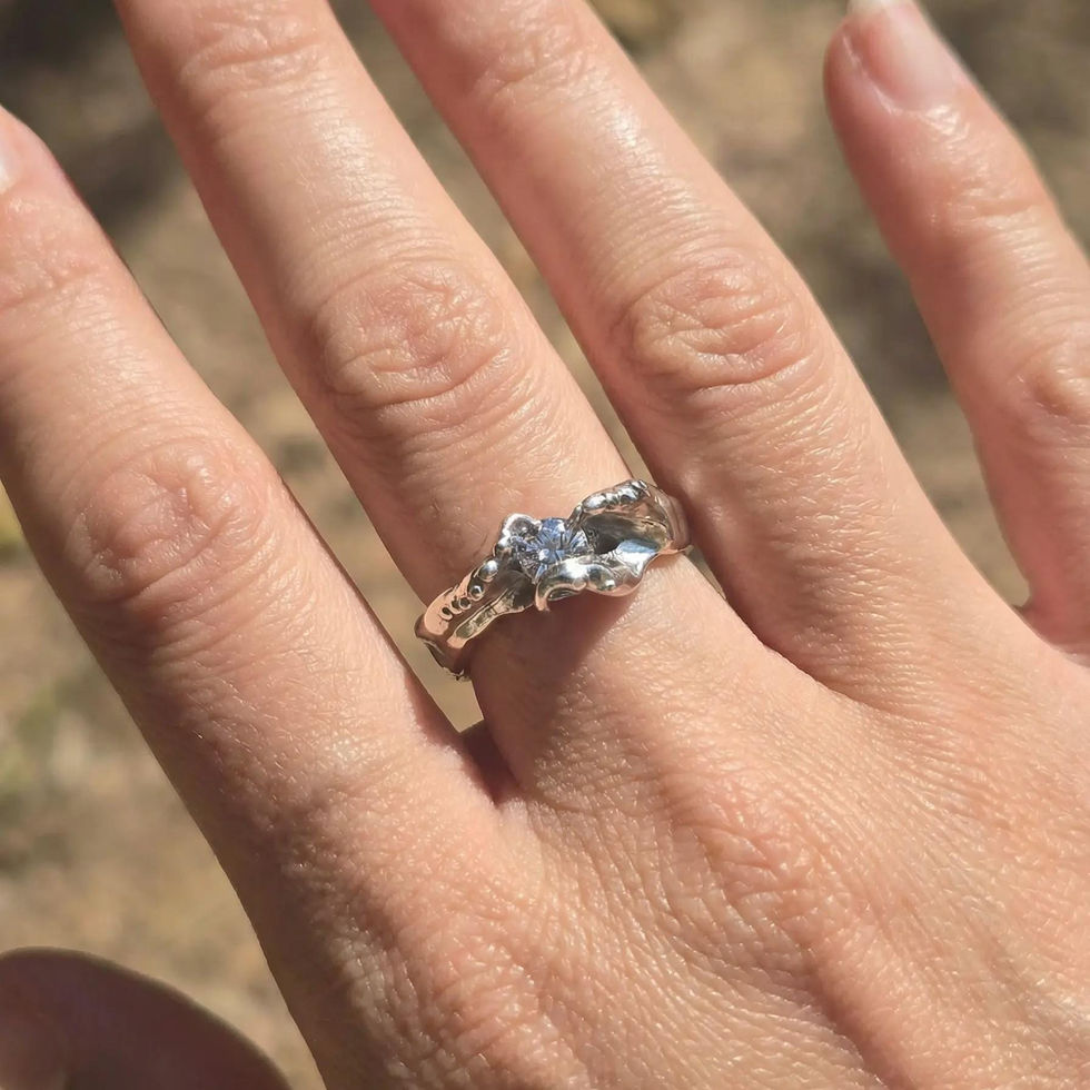 Handmade Sterling Silver Octopus Tentacle Ring w/ 6x6mm Triangular Zircon